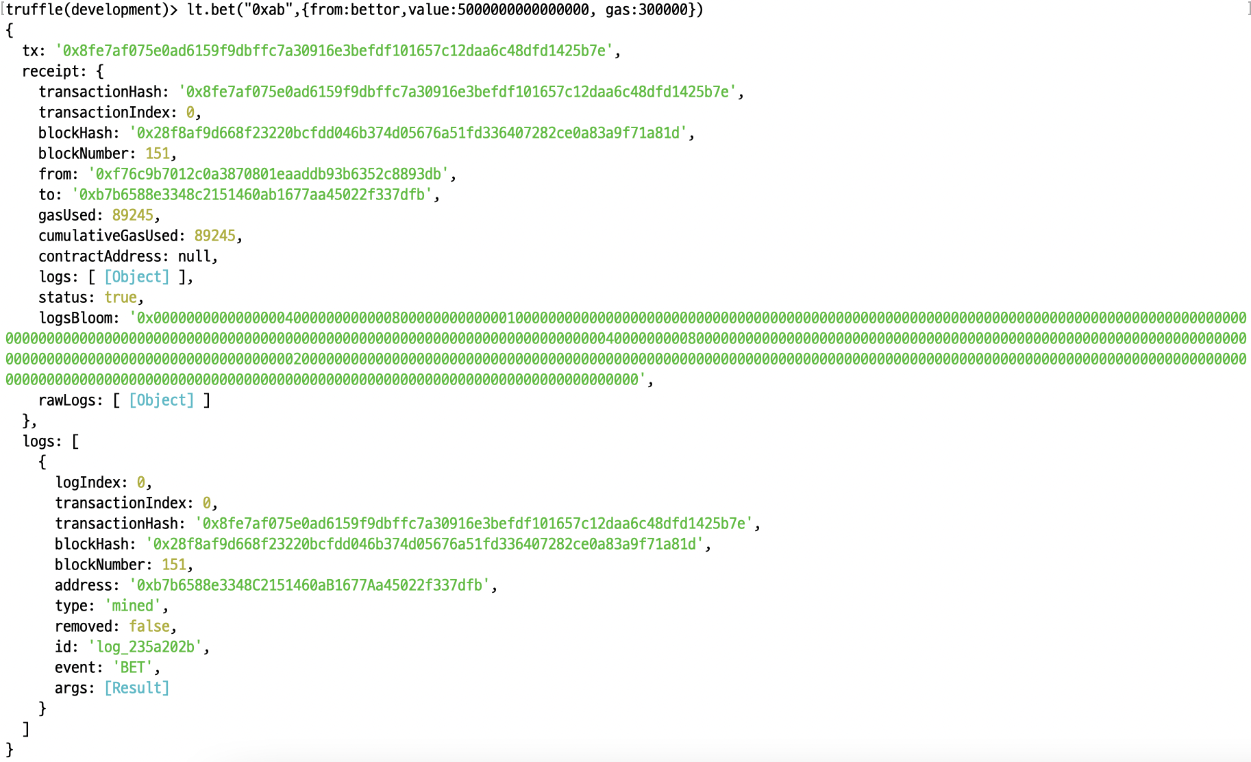 lt.bet("0xab",{from:bettor,value:5000000000000000, gas:300000})