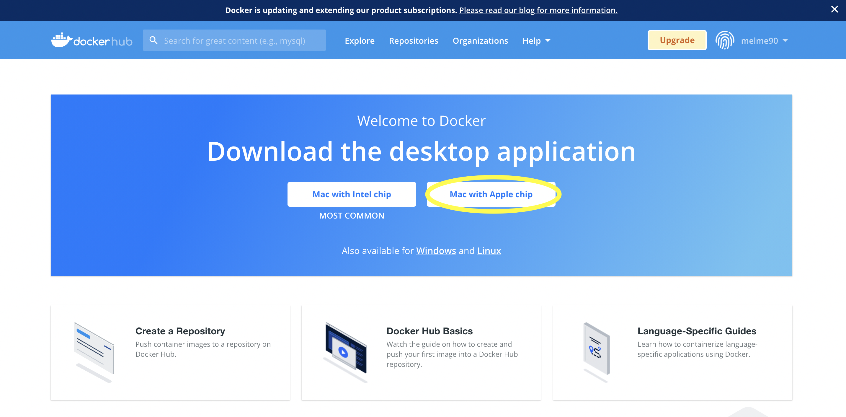 아니면 https://docs.docker.com/desktop/mac/apple-silicon/ 이 링크에서 m1용을 바로 다운 받을 수도 있다.