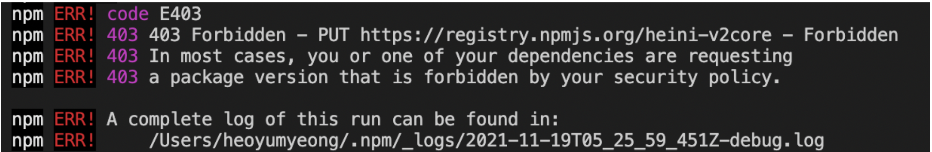이런 내용의 오류가 뜬다면 이메일인증을 안한 것. 인증 완료하고 다시 publish 한다.