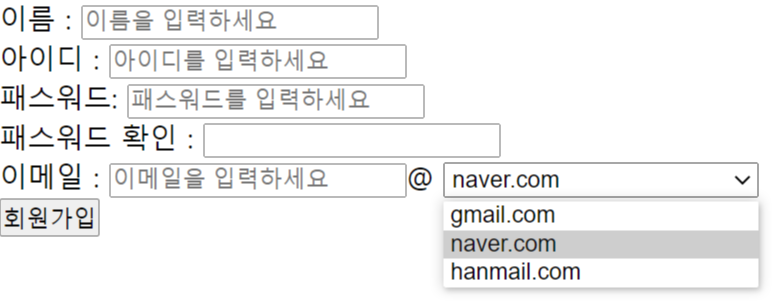 이메일 : <input type="text" placeholder = "이메일을 입력하세요">@