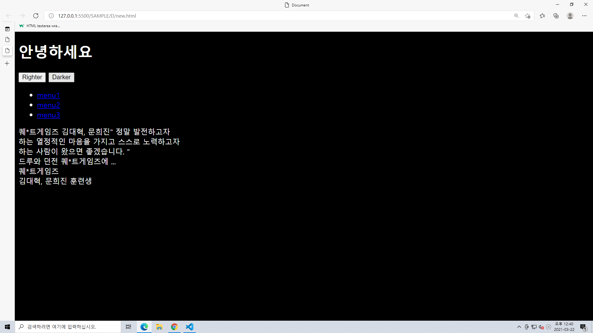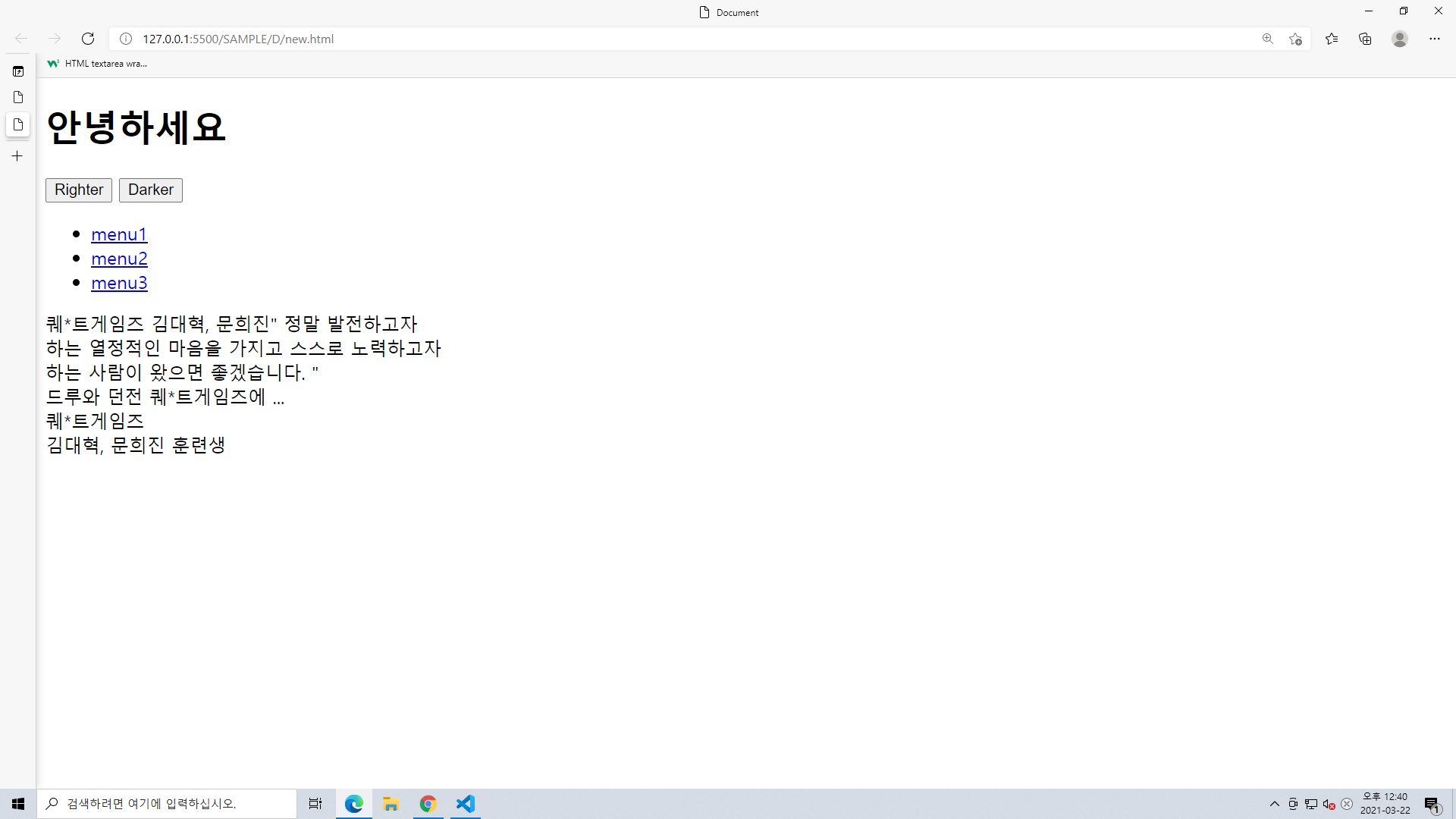 HTML로 Righter 과 Darker 버튼을 만듬