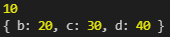 let obj = {a:10,b:20,c:30,d:40};